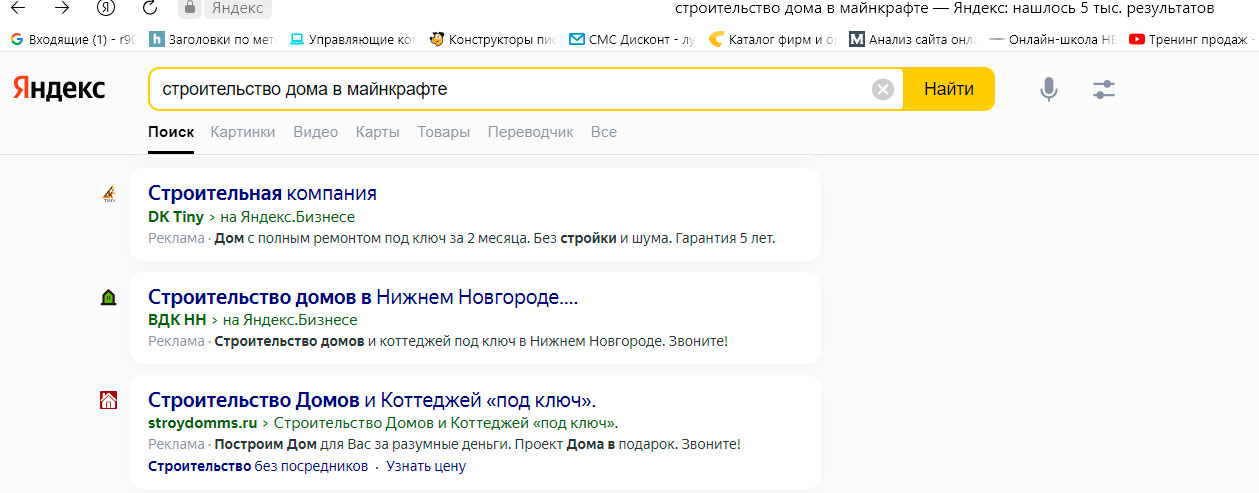 Поисковик выдал рекламу трех строительных компаний. Результат: ребенок зашел на сайт, деньги со счета списались.